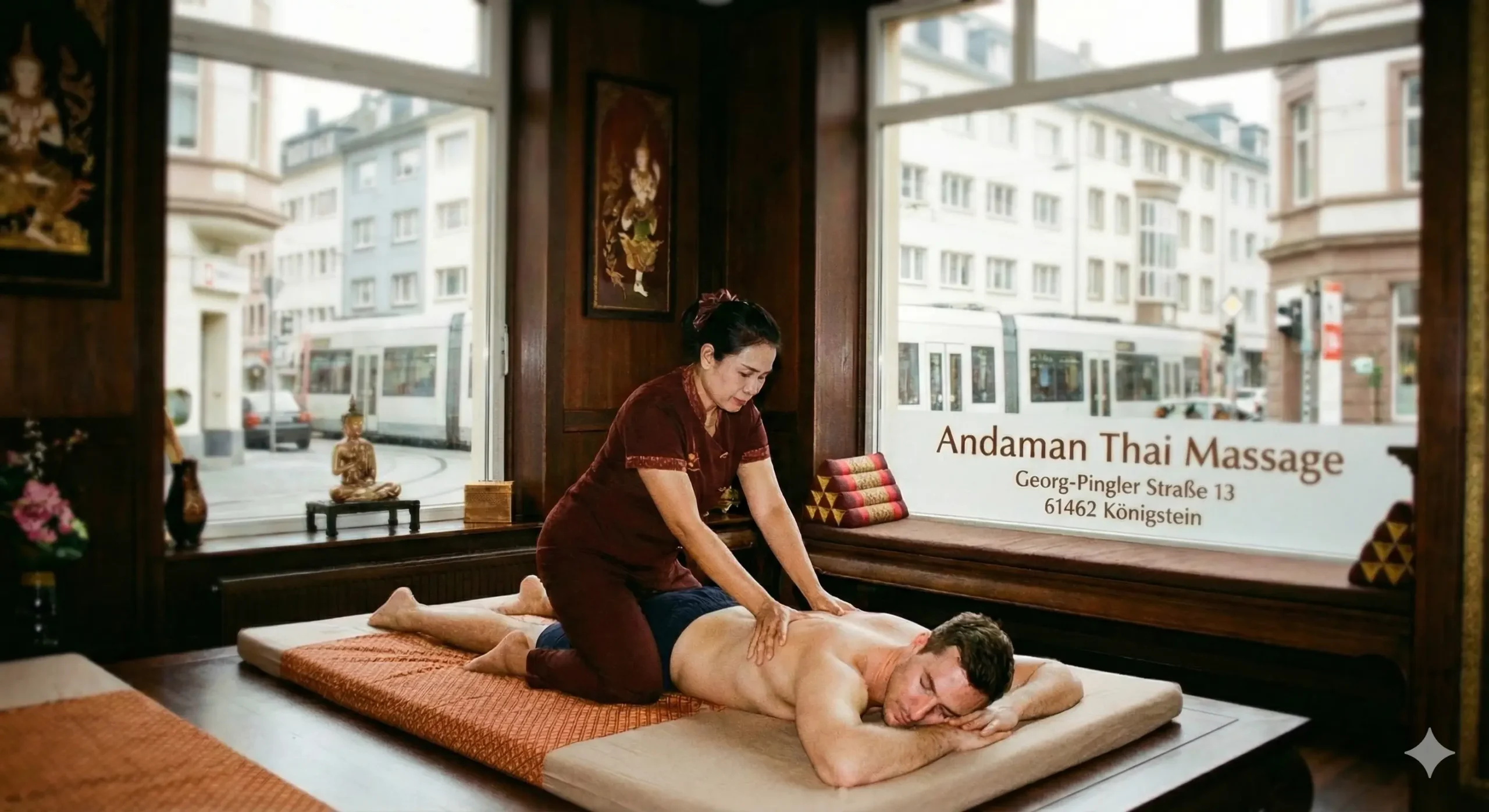 Willkommen bei Andaman Thaimassage in Königstein! Kanthida Alt und ihr zertifiziertes Team bieten professionelle Massagen für Entspannung in liebevoller Atmosphäre. Von der traditionellen Thaimassage bis zur Paarmassage – genießen Sie bei uns eine erholsame Auszeit vom Alltag. Wir freuen uns auf Ihren Besuch!