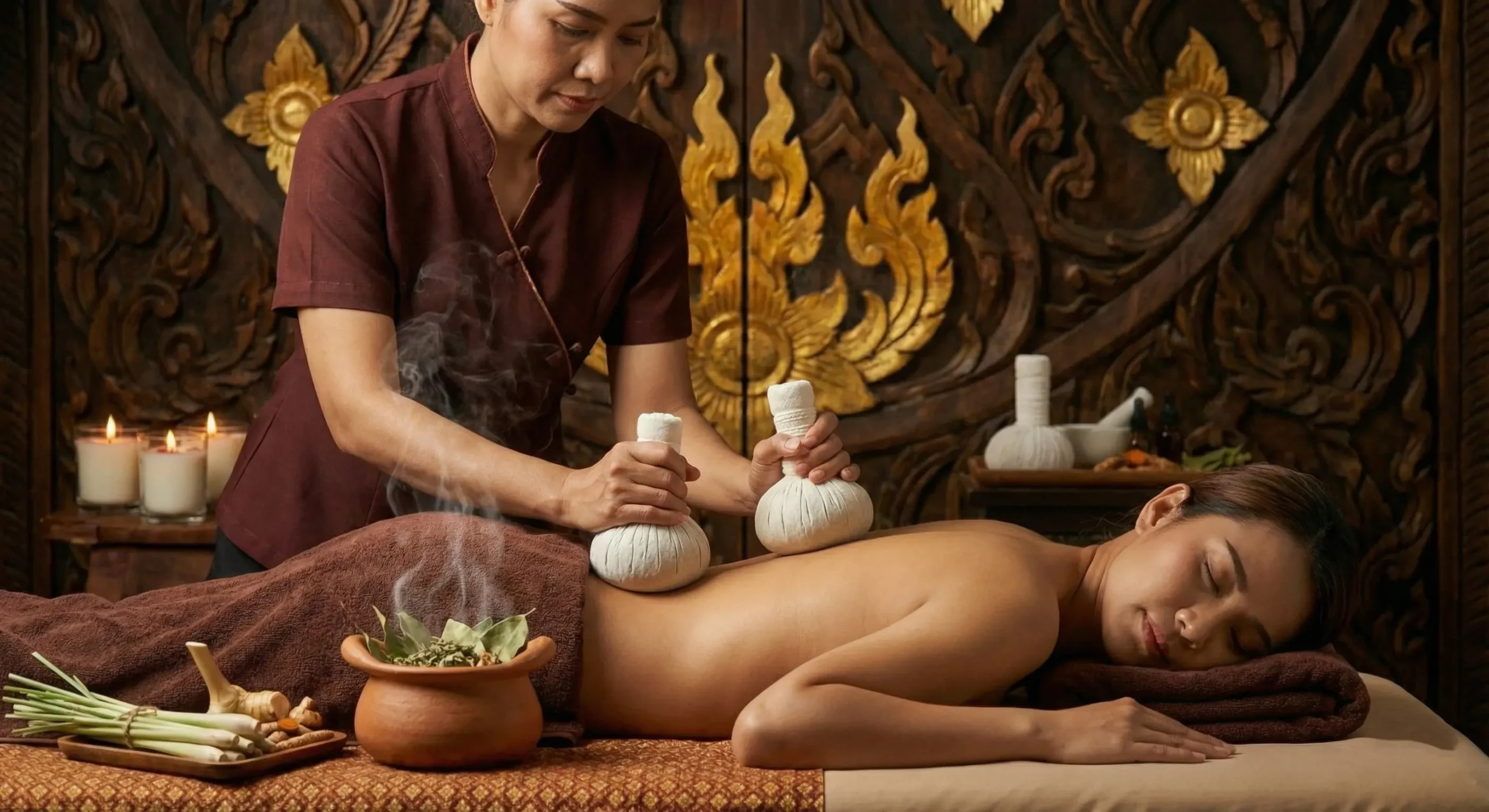 Heilsame Kräuterstempel und sanfte Wärme zur Anregung des Stoffwechsels und für tiefe Regeneration.